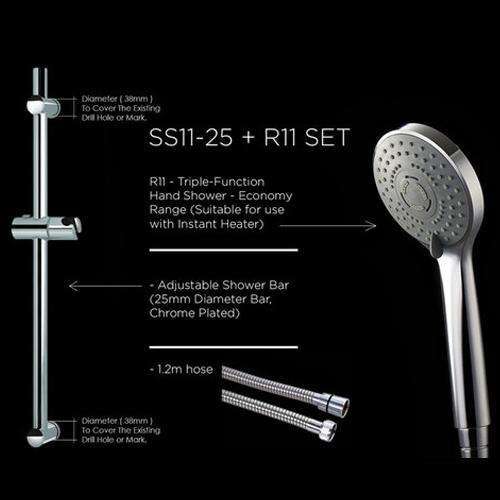 ◇ SS11-25: Adjustable Shower Bar + R11 Hand Shower c/w 1.5m hoses (25mm Diameter Bar, Chrome Plated)
