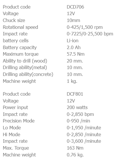 12V MAX Brusless Twin Kit DCD706 + DCF801 (3.0Ah X2)