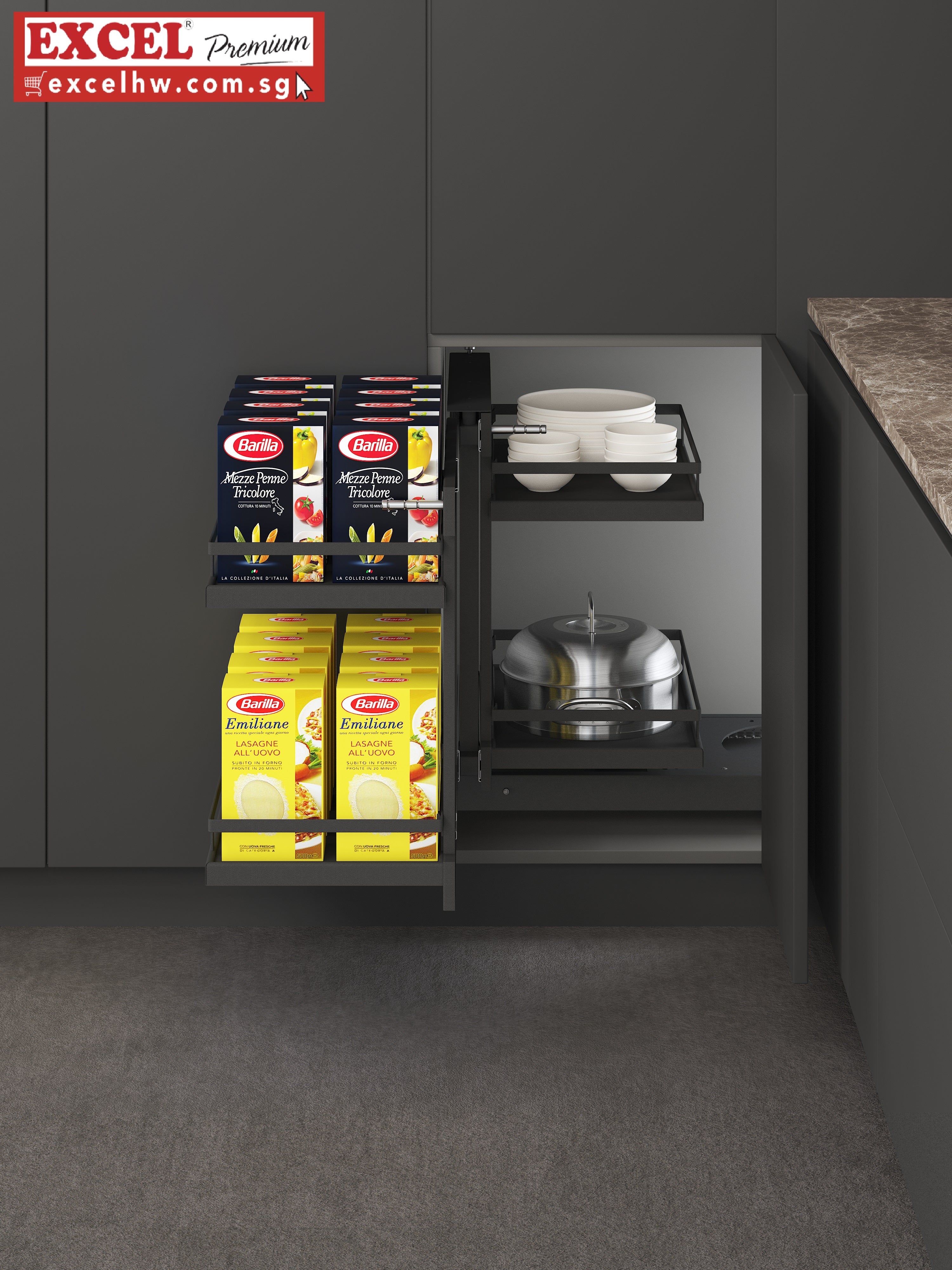 Angoli Morti - Matte Black Series SUS304 Magic Slimline Slabs Pull Out System 2 + 2