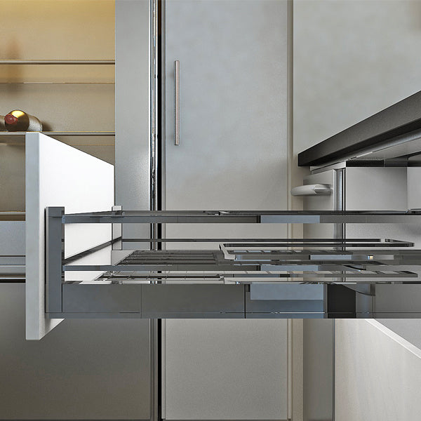- This stainless steel wire pull-out features soft-closing full-extension slides and bottom mounting brackets