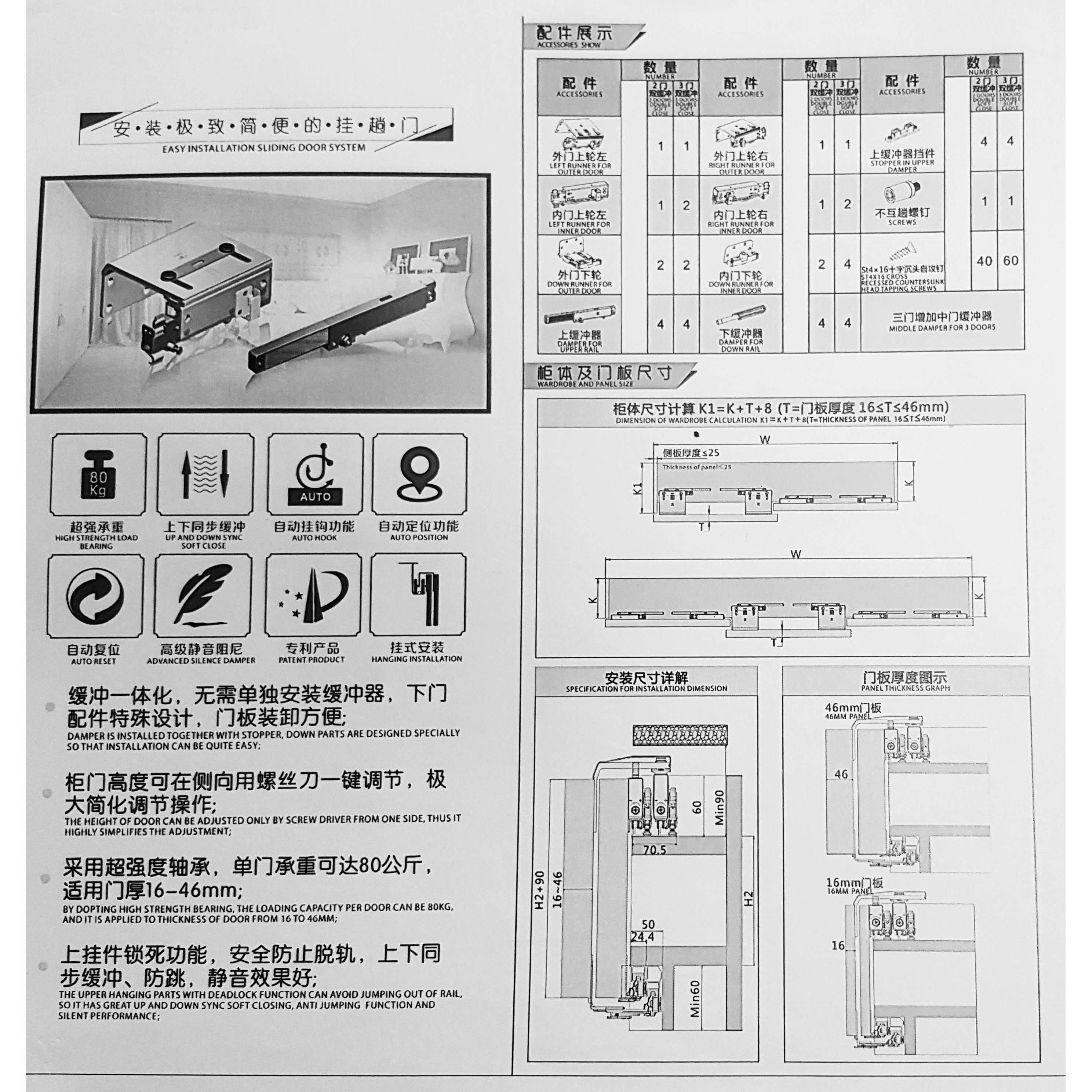 (For 3 doors, the middle door weight cannot exceed 60kg)