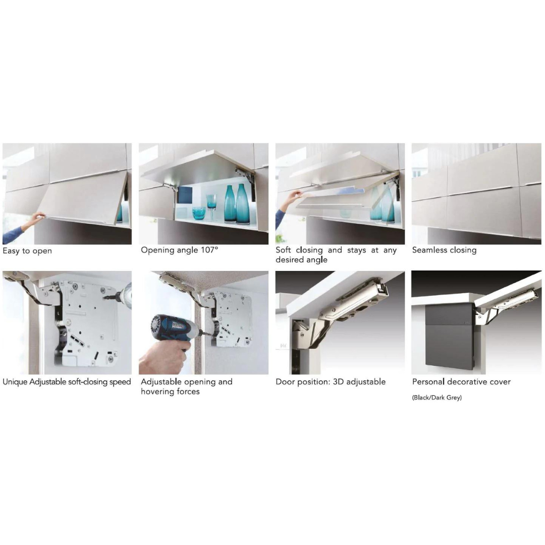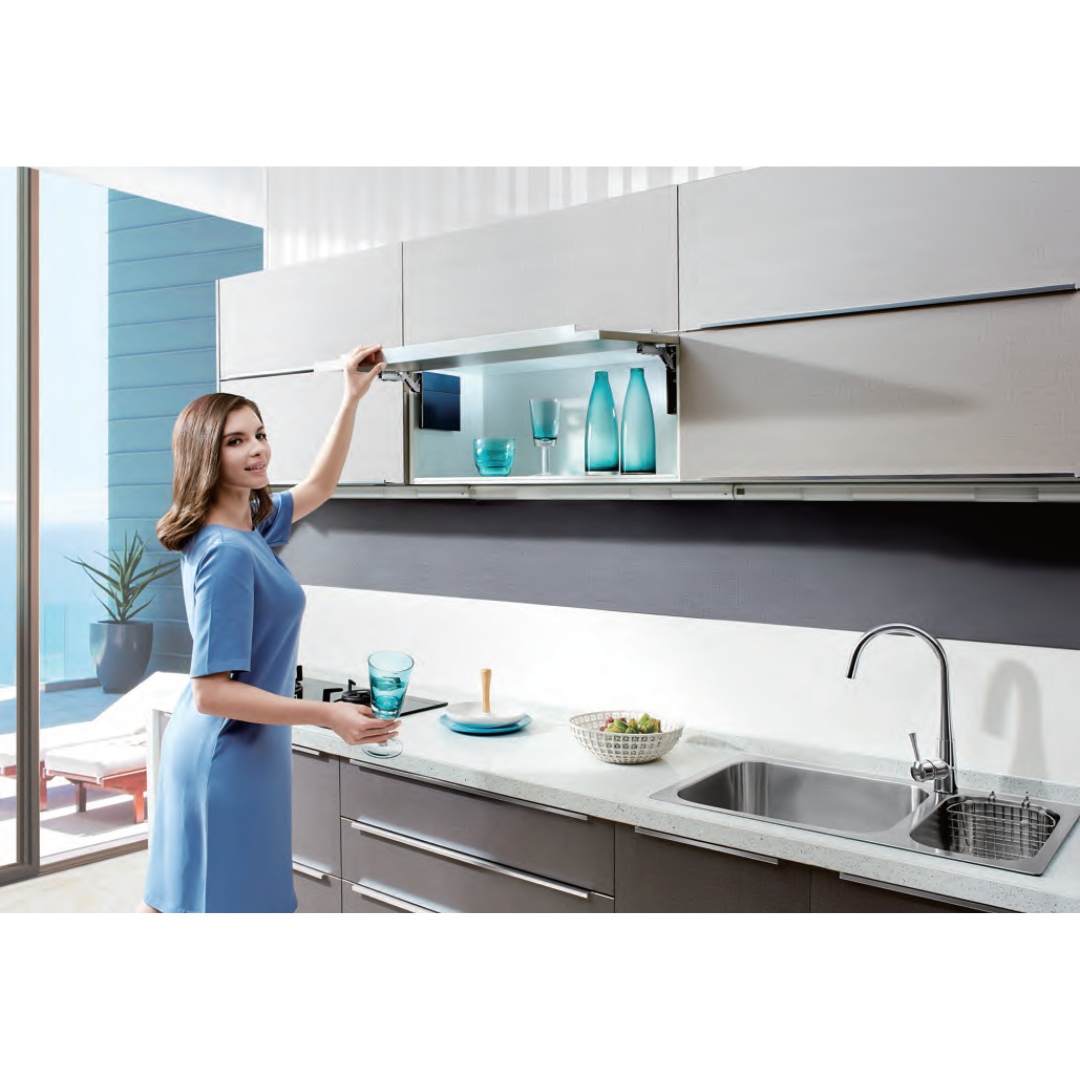 The top stay lift-up system from Excel Costanzo is a brilliant piece of modern engineering which optimizes cabinet storage and facilitates ease of access through pneumatic arms-operated doors. You can order the system in heavy or medium-duty dimensional variants.