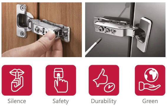 The PIVOT-STAR is an innovative technology hinge characterized by its fast-adjustable soft-close design. The door closing speed can be adjusted to suit different door sizes and/or user preferences by turning the speed setting screw from "-" to "+" . This speed-adjustability feature makes the PIVOT-STAR stand out from other hinges that only allow users to activate or deactivate the soft-close function.