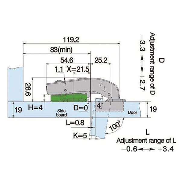 - Possible of drilling distances on the door (K): 3-7mm