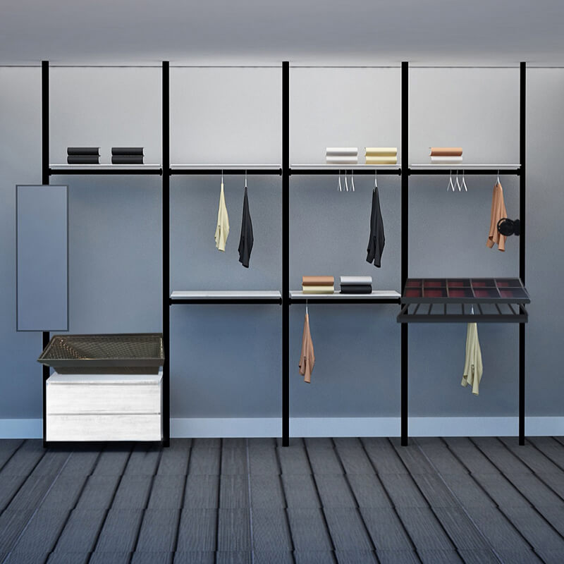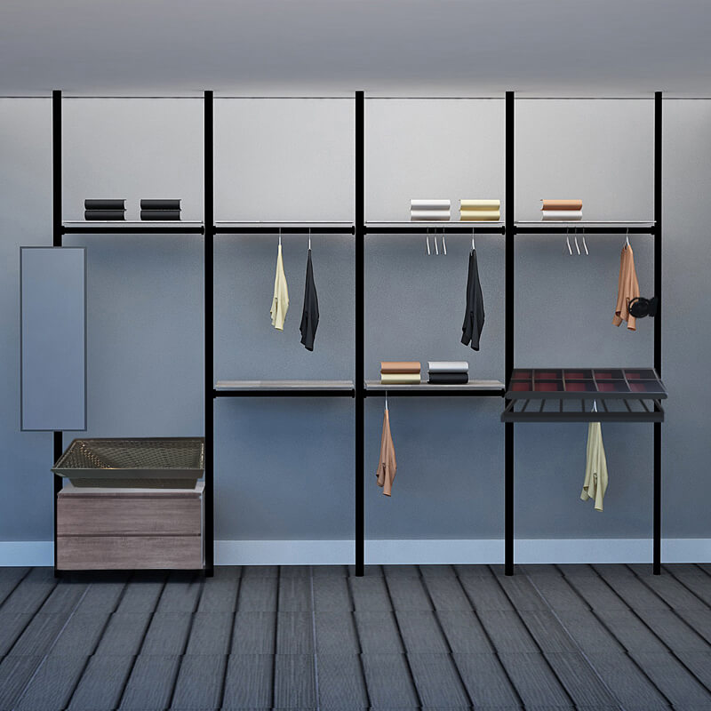 Excel's solution is this modular wardrobe where you can custom build your very own storage space. By picking from a wide range of compartments, you can create your own wardrobe system to accommodate your space limitations