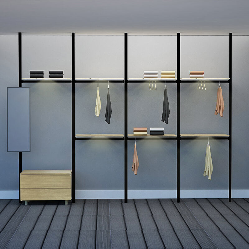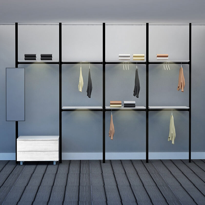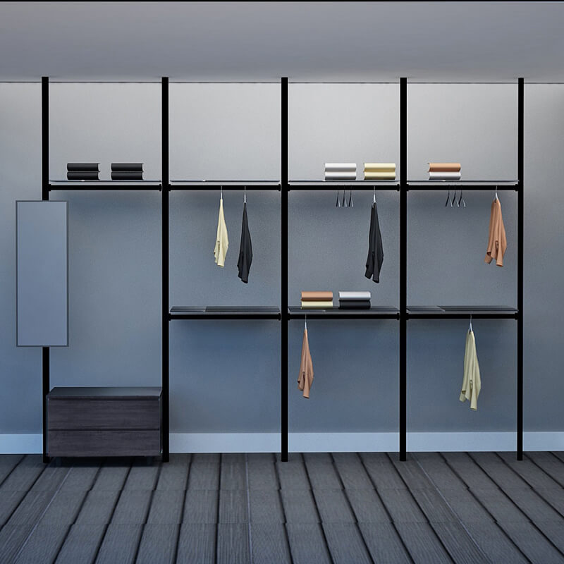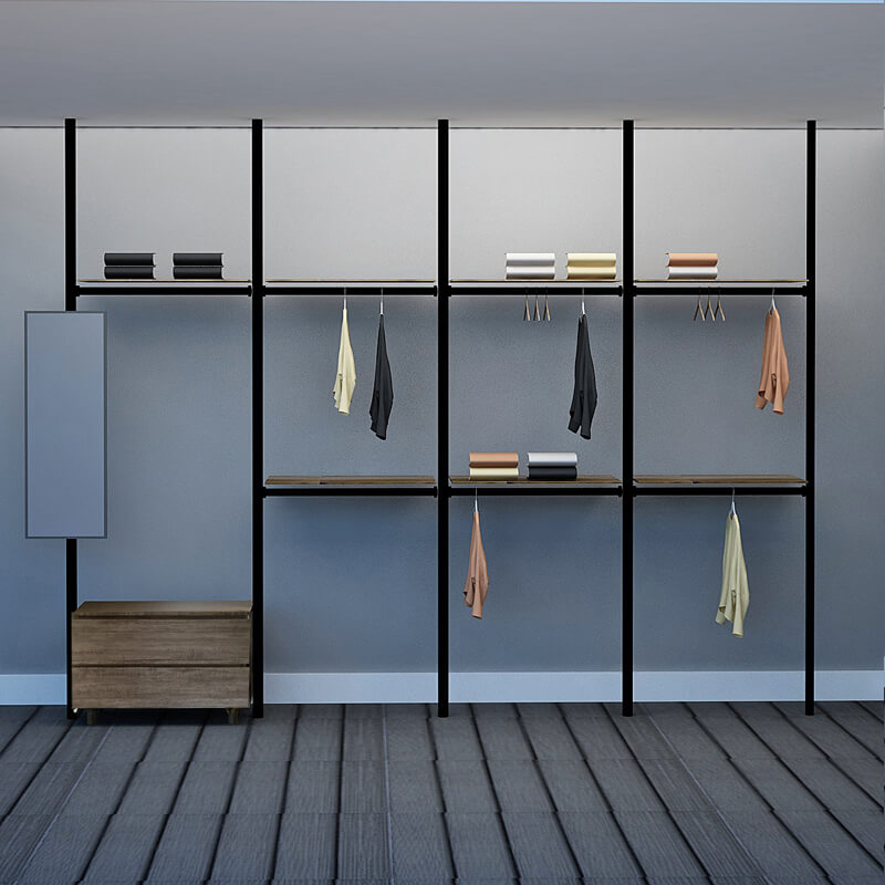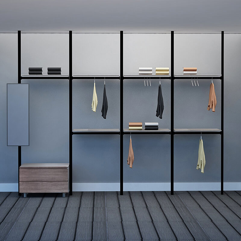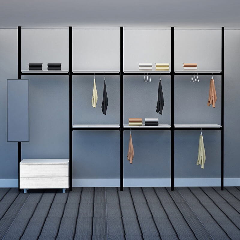 Excel's solution is this modular wardrobe where you can custom build your very own storage space. By picking from a wide range of compartments, you can create your own wardrobe system to accommodate your space limitations