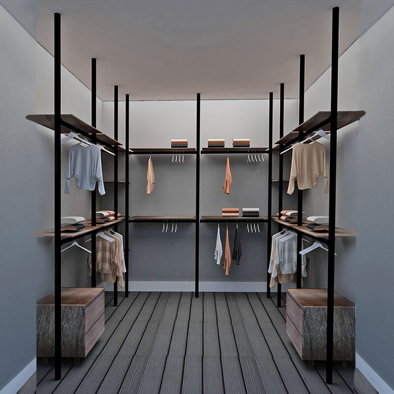 Excel's solution is this modular wardrobe where you can custom build your very own storage space. By picking from a wide range of compartments, you can create your own wardrobe system to accommodate your space limitations