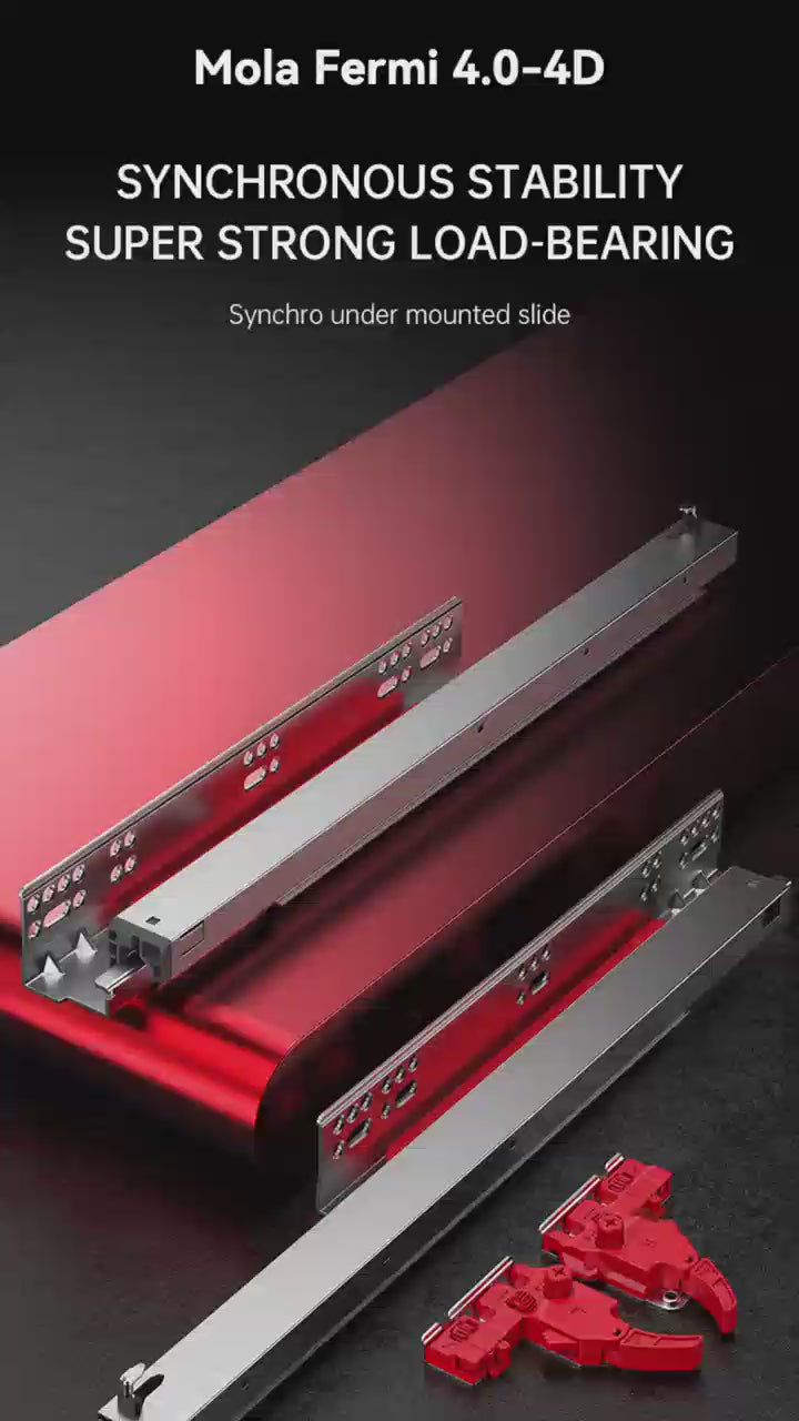 The Mola Fermi series is a premium range of fully extendable undermount slides. The soft closing mechanism for drawers absorb any force exerted by the user and allows the drawer to close gently and quietly. The soft closers sitting at strategic locations along the runner offset the excess energy transmitted to the drawer panel.
