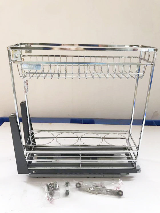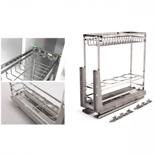 The 2-tier multi-purpose slimline slabs pull out kitchenware basket is an elegant accessory that is designed to help store a broad range of products.