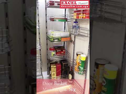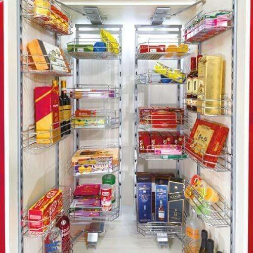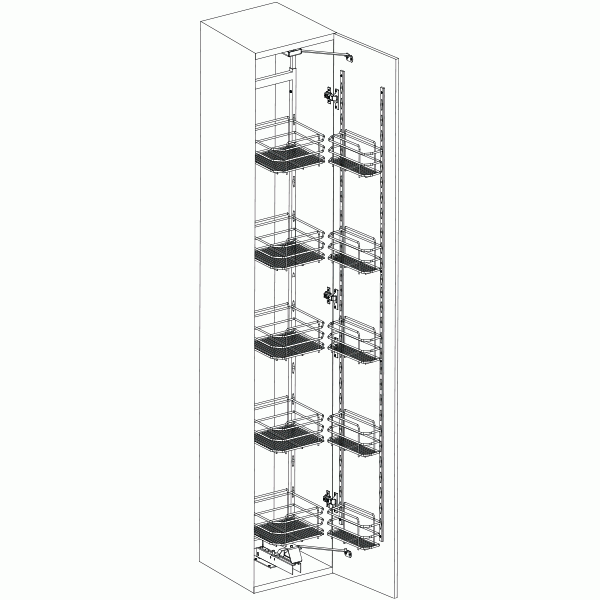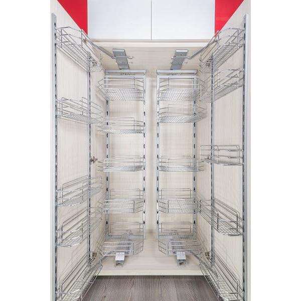 The tandem pantry unit from Excel with 5 vertical baskets in each of the two parallel main frames is a state of the art product that has been designed for space optimization and ease of access.